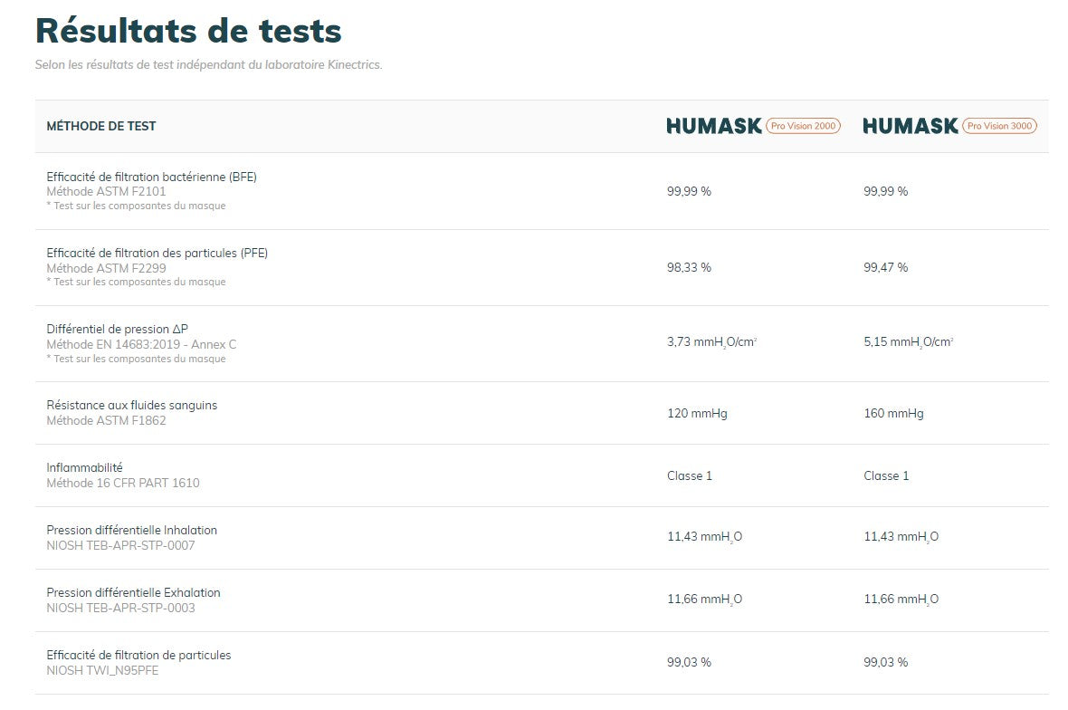 - Membrane filtrante HuCare qui conserve son haut niveau de protection comparativement aux membranes classiques qui peuvent perdre en efficacité avec le temps.
