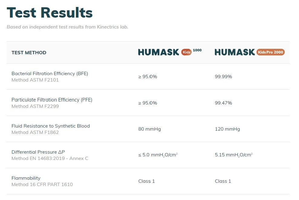 - Filtration layer: Meltblown (Humask Kids 1000)